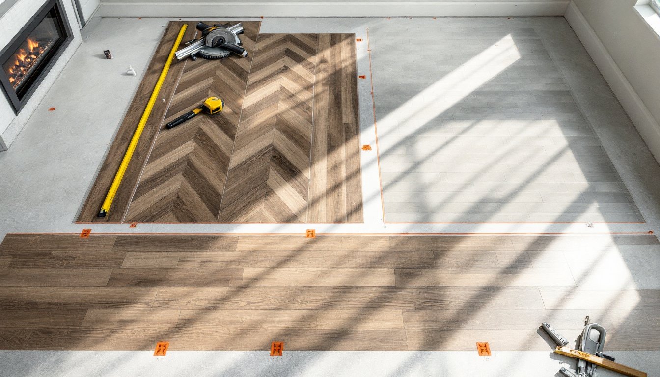 Choosing the wrong pattern for a room’s shape often means fighting the layout through the entire install. A herringbone pattern in a 10×10 room creates four times the cuts of a straight lay in the same space. If you’re paying by the hour or working weekends, that math matters.